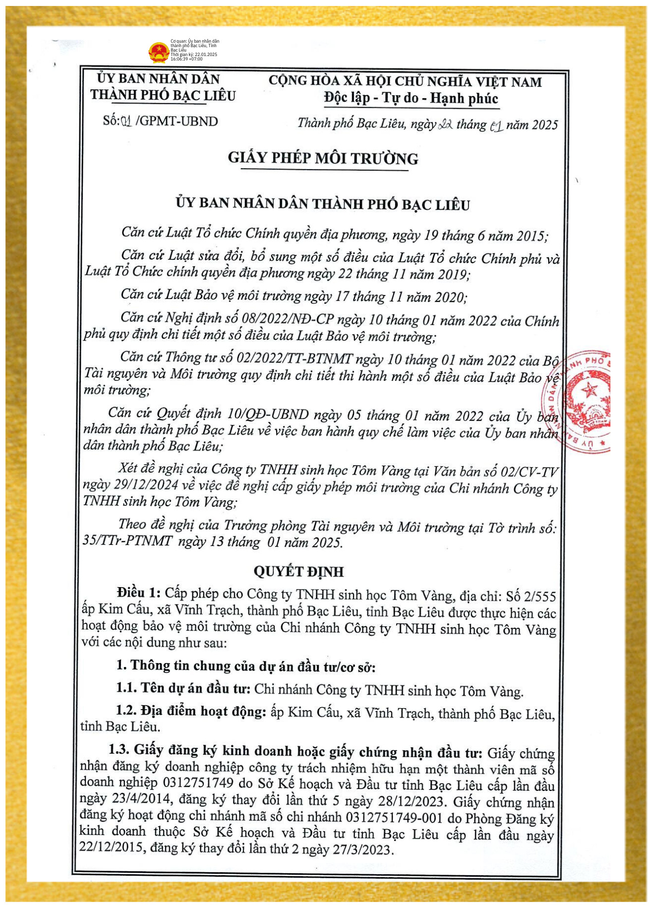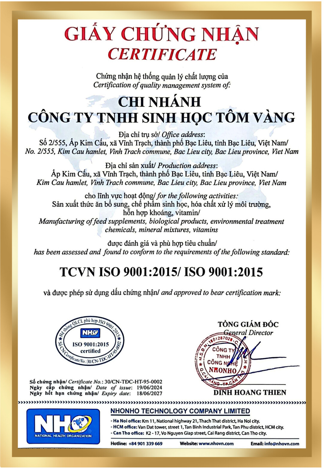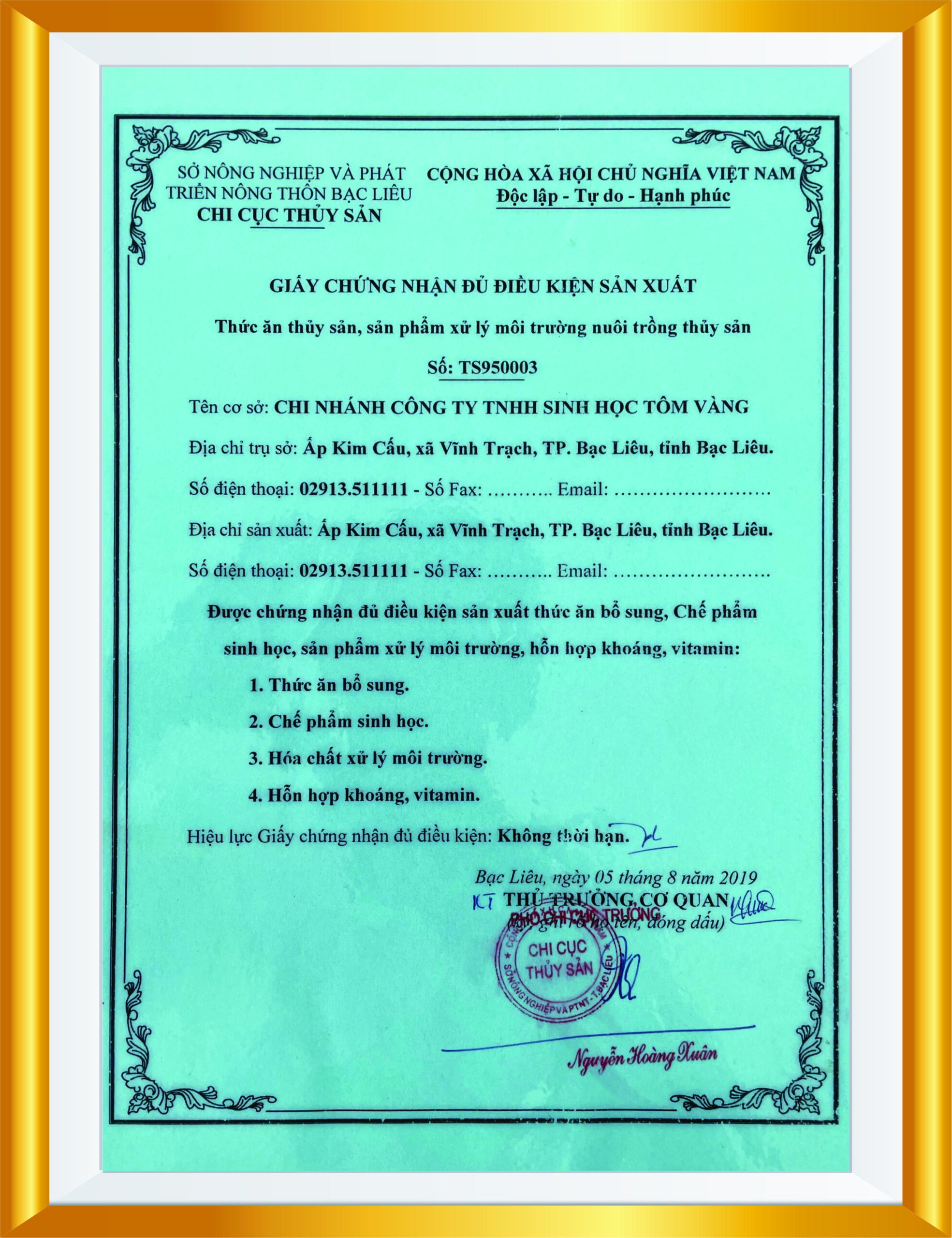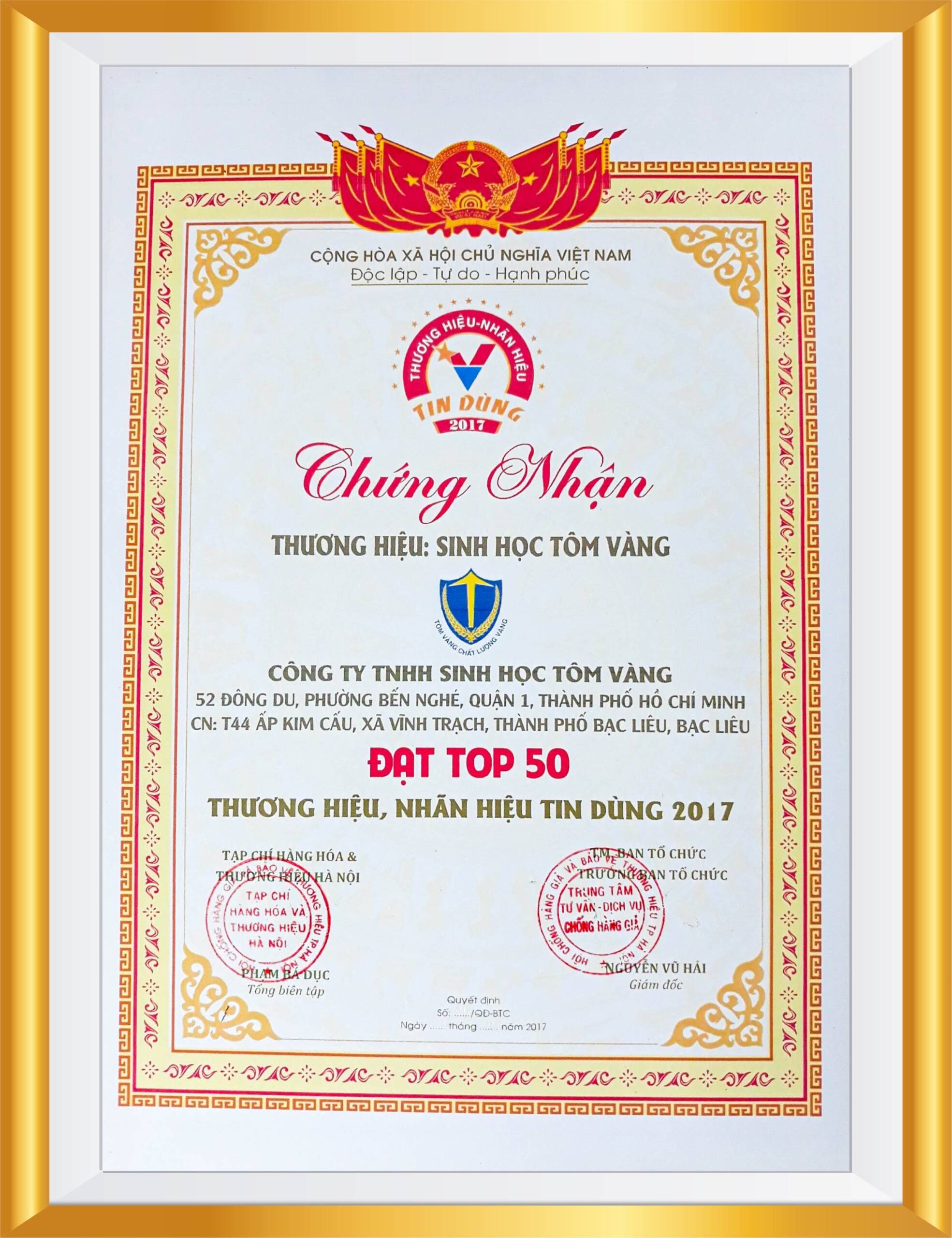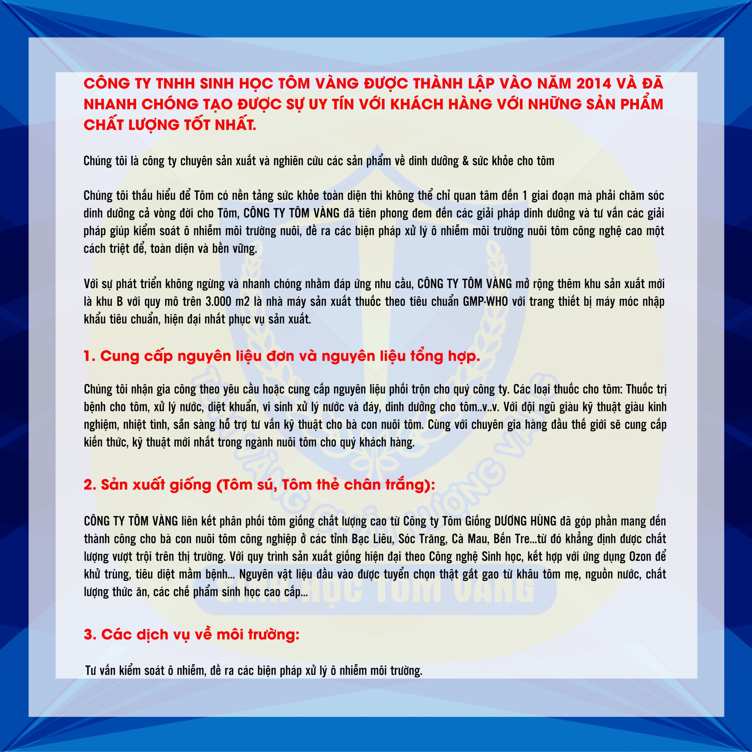 CÔNG TY TNHH SINH HỌC TÔM VÀNG cam kết mang đến cho Quý khách hàng những sản phẩm chất lượng tốt nhất cùng với những dịch vụ mang tính chuyên nghiệp!