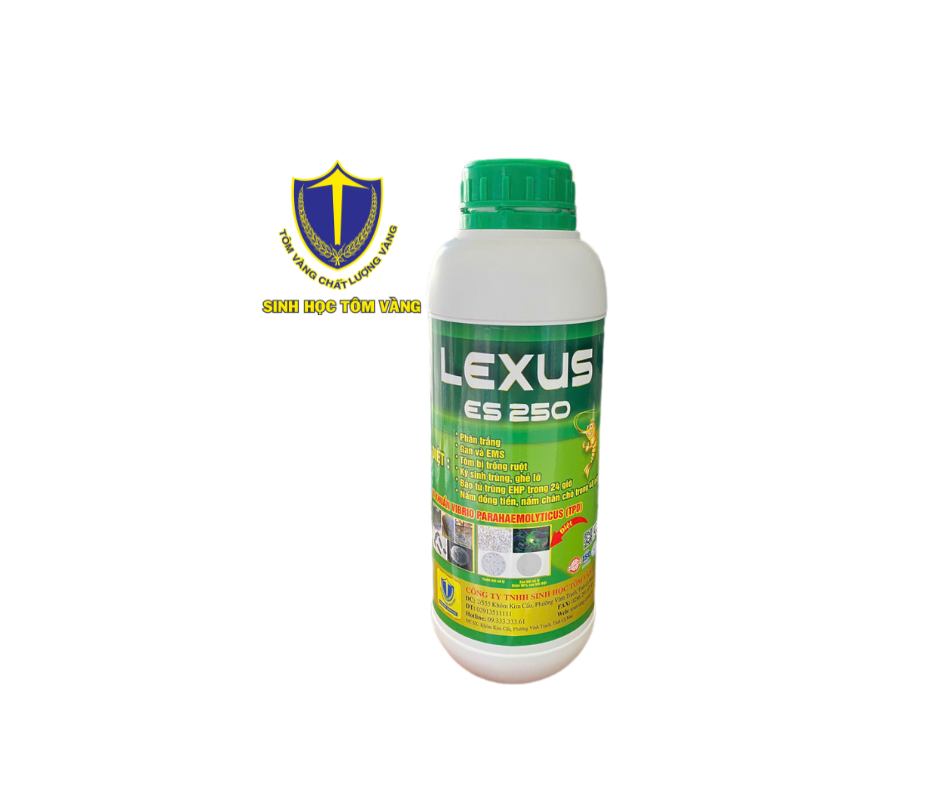 Sản phẩm LEXUS ES250 Thuốc Diệt Khuẩn Ao Nuôi Tôm ao nuôi tôm giải quyết các khuẩn gây các hiện tượng như gan, EMS và tôm bị trống ruột rất hiệu quả. Đặc biệt sản phẩm còn có công dụng khác như diệt ký sinh trùng, nấm đồng tiền, ghẻ lỡ trên: Tôm, Cá, Ếch, Lươn, Tôm đóng nhớt,….