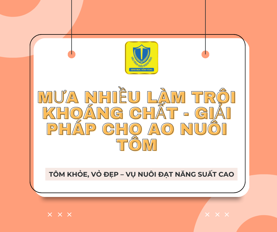 Mưa nhiêu làm trôi khoáng chất – Giải pháp cho ao nuôi tôm Trong mùa mưa, ao nuôi tôm thường gặp nhiều biến động bất lợi: Nước mưa có tính axit làm giảm pH trong ao. Độ cứng và độ