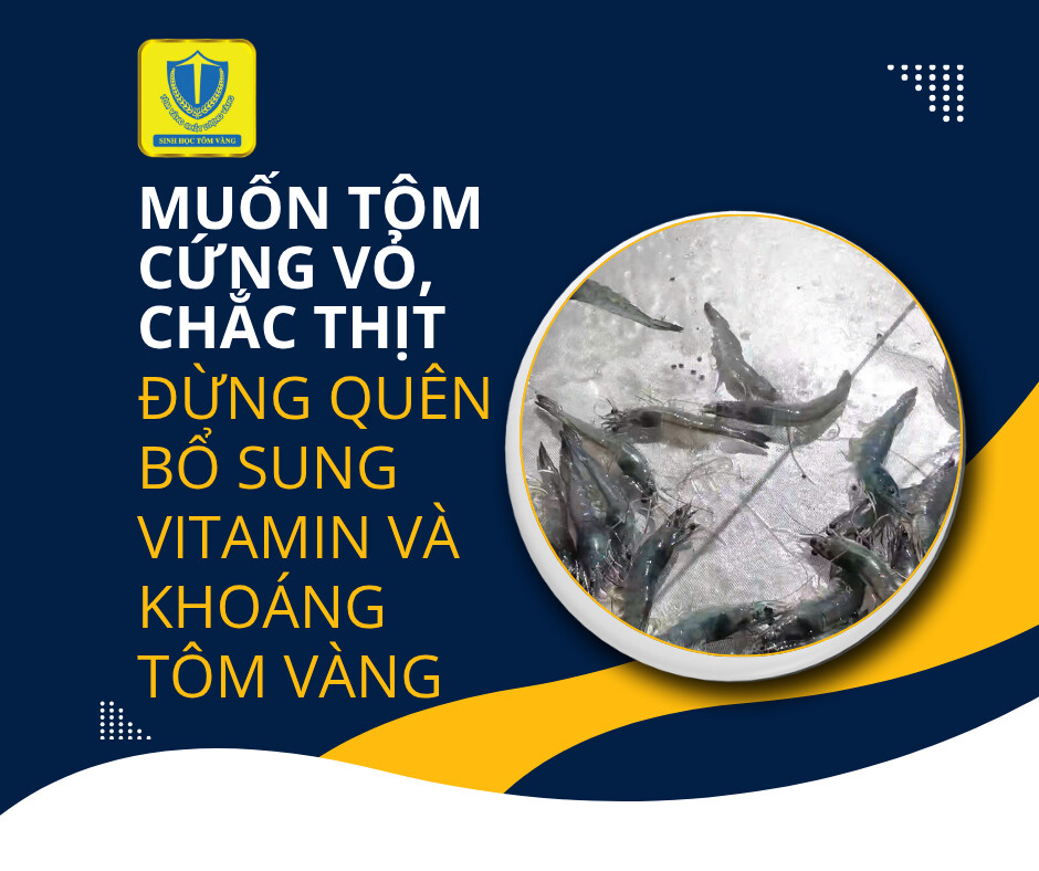 Muốn tôm cứng vỏ, chắc thịt – đừng quên bổ sung vitamin và khoáng Tôm Vàng! Trong suốt quá trình nuôi tôm, việc bổ sung vitamin và khoáng chất là yếu tố quan trọng quyết định đến sức khỏe, tốc