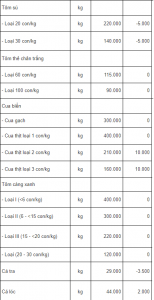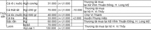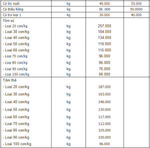 Giá tôm cá tại tỉnh Trà Vinh (tháng 12/2018)