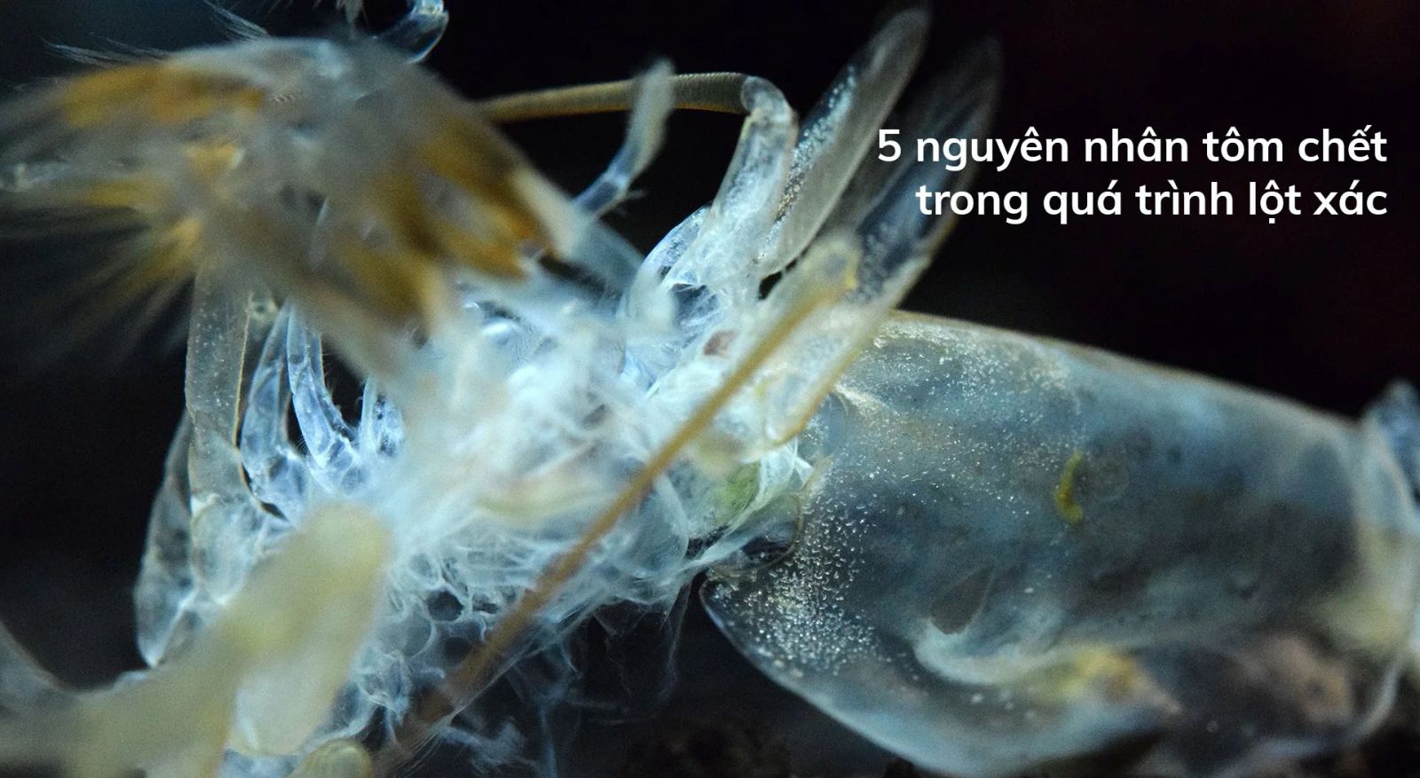 Tôm chết trong quá trình lột xác thường được thấy kèm theo cơ thịt trắng cùng với vỏ mỏng và mềm. Nguyên nhân có thể là: thiếu oxy, thiếu các khoáng chất chính, tỉ lệ khoáng không hợp lý, độ kiềm thấp hoặc bị nhiễm khí độc H2S (Khí độc Hydro sulfure). Người nuôi cần duy trì độ kiềm thích hợp ít nhất là 120ppm và giữ đúng tỉ lệ Mg/Ca/K. Bắt buộc phải đảm bảo rằng hàm lượng oxy và không có sự hiện diện của H2S ở đáy ao. Người ta khuyến cáo nên sử dụng men vi sinh để loại bỏ H2S một cách hiệu quả.