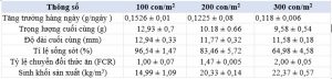 Kết quả cho thấy tỷ lệ sống có sự khác biệt đáng kể giữa ba nghiệm thức (p <0,05). Giá trị của tỷ lệ chuyển đổi thức ăn (FCR) trong thời gian nuôi cũng thay đổi giữa ba nghiệm thức. FCR tăng lên khi mật độ tôm tăng lên. Giá trị FCR nhỏ nhất khi nuôi tôm ở mật độ 100 con/m2 là 1.00 và lớn nhất là mật độ 300 với FCR là 2.0.