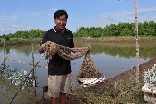 Với sự hỗ trợ của Chi cục Thủy sản, hộ ông Hứa Văn Quyền, cư ngụ ấp Kinh Ba, xã Tam Giang Đông, huyện Năm Căn, tỉnh Cà Mau đã nuôi cá măng sữa trong vuông tôm. Sau 4 tháng