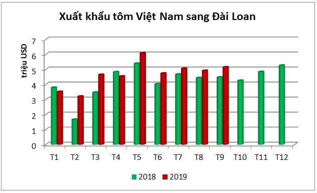 Đài Loan là thị trường nhập khẩu tôm lớn thứ 8 của Việt Nam, chiếm 1,7% tổng giá trị xuất khẩu tôm của Việt Nam đi các thị trường. Xuất khẩu tôm Việt Nam sang thị trường này khá ổn