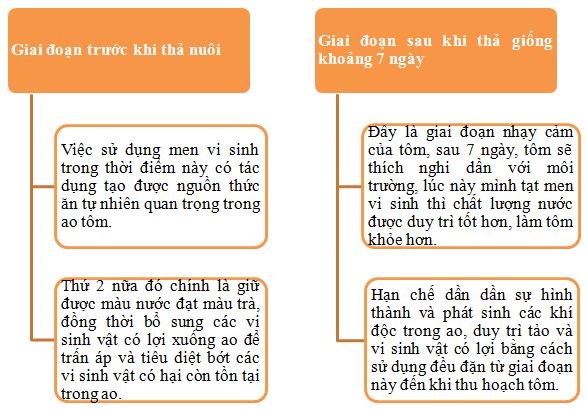 Có 2 thời điểm tốt nhất để sử dụng men vi sinh trong nuôi tôm đó chính là trước giai đoạn thả giống và sau thời điểm thả giống khoảng 7 ngày. Tại sao cho bà con 2 thời điểm này, là vì:
