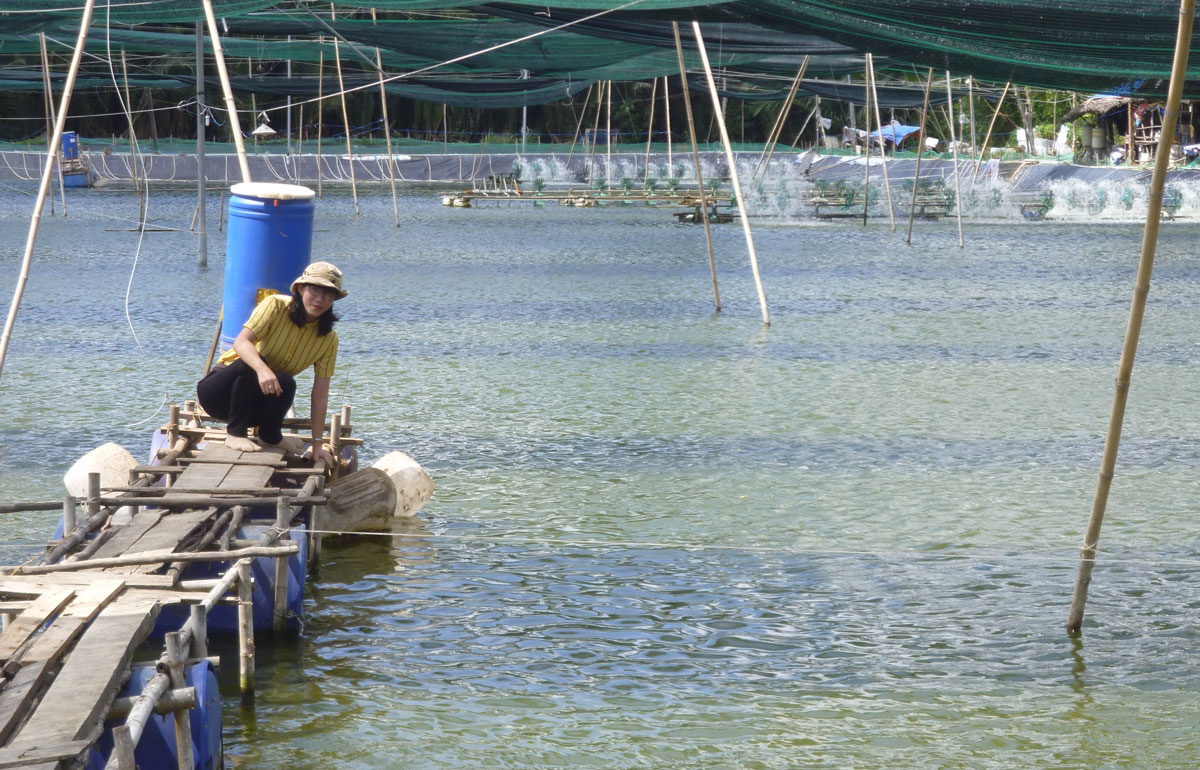 Mới bước qua tuổi 40 nhưng Vũ có vẻ như người có nhiều trải nghiệm trong cuộc sống. Anh chỉ tay về những vuông ao và cho biết, mình đầu tư vốn cải tạo biền dừa nước năm nào thành những đầm tôm, tốn đến bạc tỉ.Theo anh, nên tạo những vuông ao 40m x 40m, tức 1.600m2 mặt nước là dễ quản lý, dễ chăm sóc hơn. Chứ ao 18.000m2 mà anh mở đầu tiên, quản và chăm sóc rất mệt.